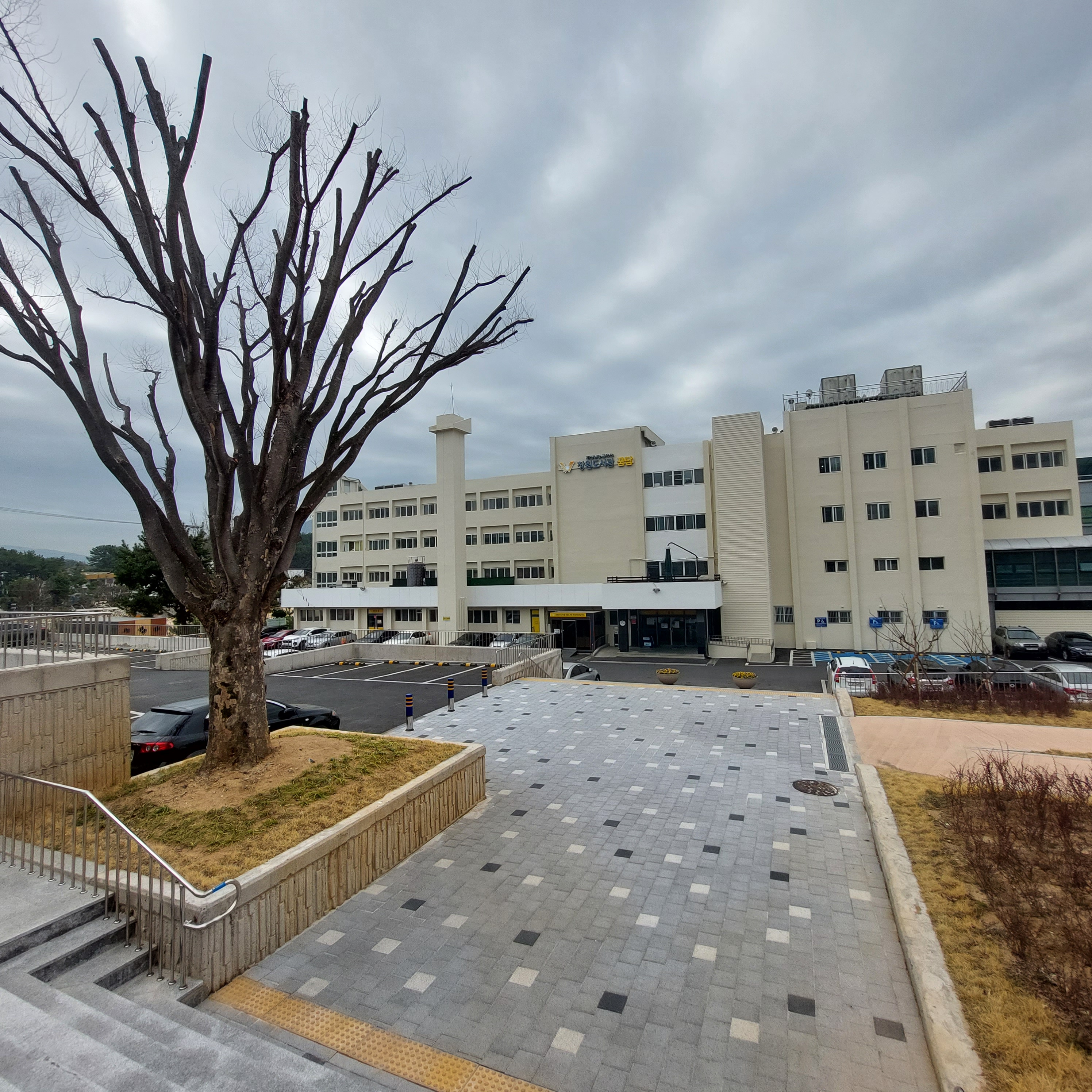 그래서 오늘은 경상남도 교육청 창원도서관 담벼락에 앉아 있습니다.