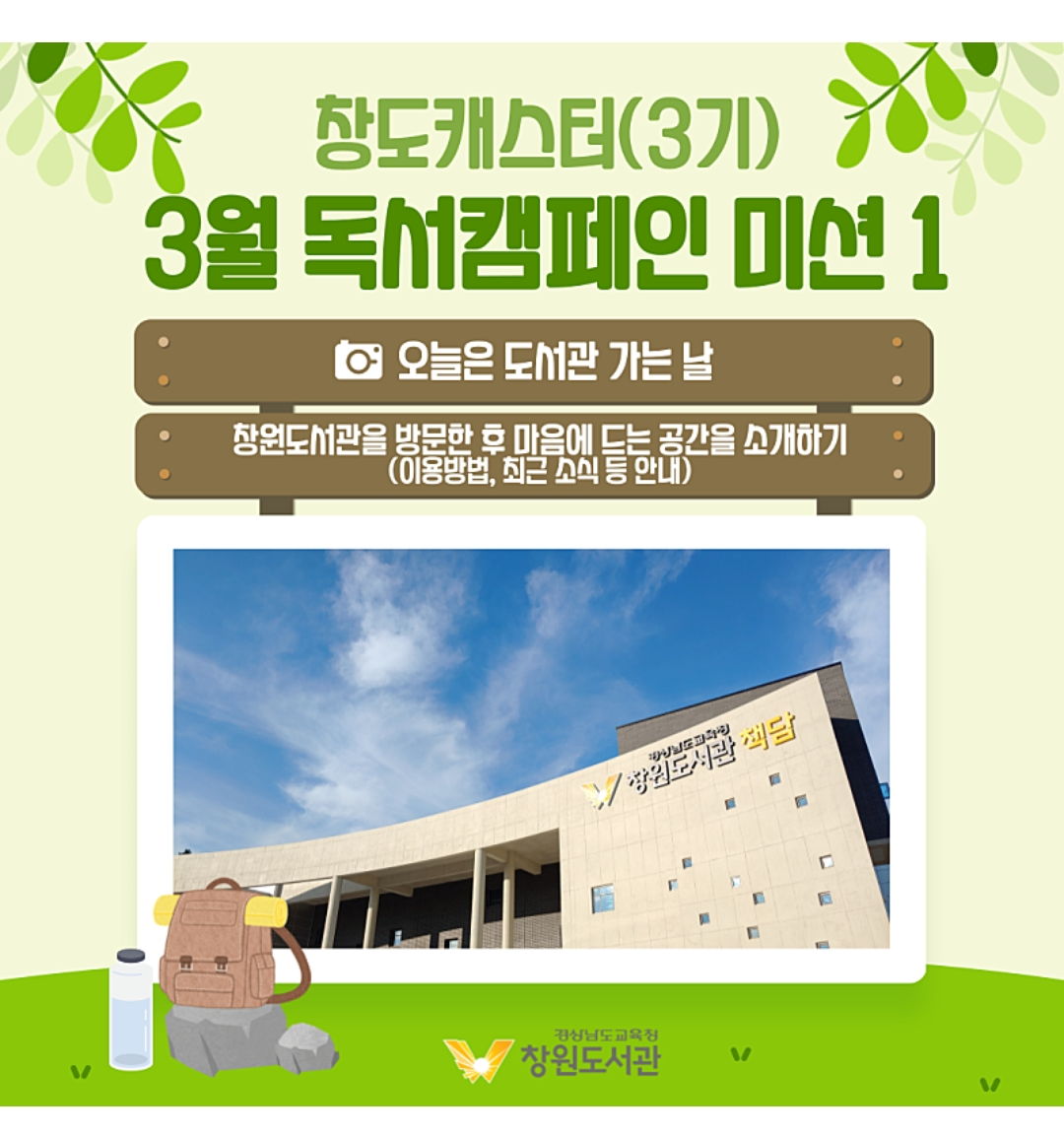 ◈ 교육부 경상남도 도서관 창원_3월 창도캐스터(3급) 독서운동; 오늘은 도서관에 가는 날 ◈