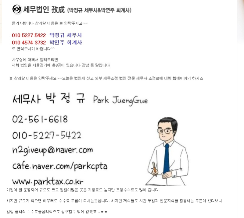 처음 사업을 시작하면 무슨 부수비용이 이렇게 많은지 모른다는 답변을 자주 듣습니다. 월급 받던 시절에는 그냥 자동으로 되는 줄 알았는데 지금은 조금만 필요해도 금전이 필요한 사안입니다. 이것을 조금이라도 절약하고 싶어서 여러 가지 잔재주를 생각하게 됩니다. 하지만 그 와중에도 놓치지 말아야 할 것이 법인 세무조정료를 사용하는 것입니다.
