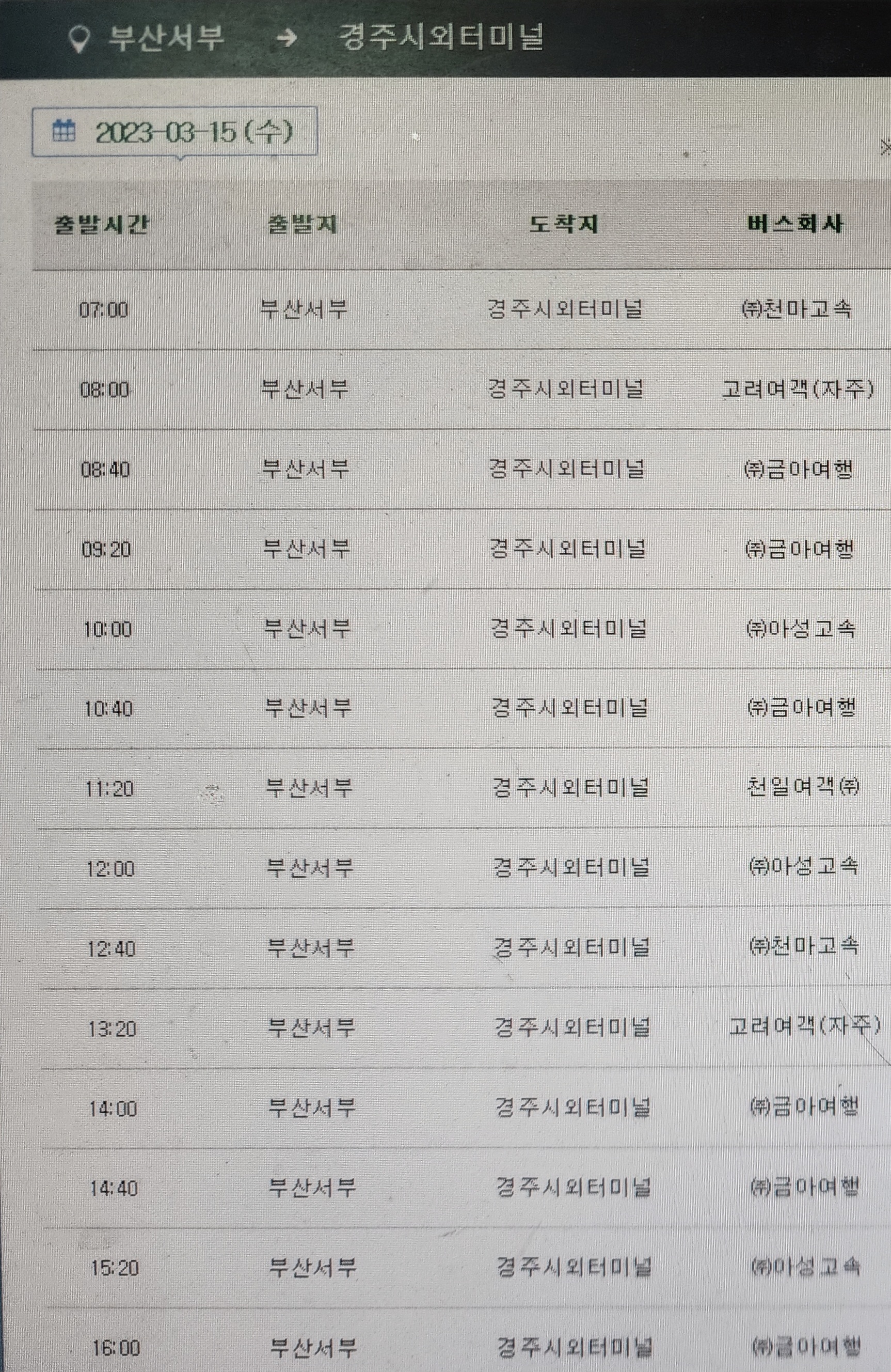 부산 서부고속버스터미널 시간표 예약 (2023년 3월 15일부터)