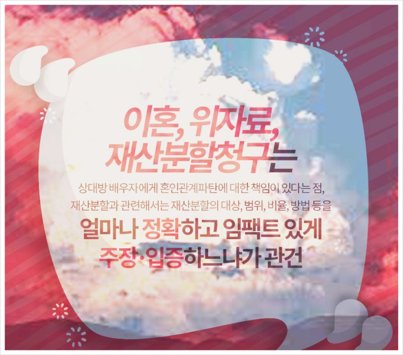 제가 주부이고 결혼생활 내내 경제활동이 없다면 재산분할을 포기해야 하나요? 그렇지 않습니다. 전업주부라도 배우자에게 도움을 주거나 가계를 알뜰하게 꾸린 것을 반영하면 공로를 인정받을 수 있다. 특히 혼인기간이 길수록 보험료율이 높아지며 일부러 불리한 조건을 합의할 필요도 없다. 배우자의 재산 확보 당신이 알고 있는 것처럼 재산이 전부라고 생각하지 마십시오. 어떤 사람은 빚이 더 많은 척하지만 알고 보면 부모가 물려준 재산이 많은 사람도 있다. 그렇기 때문에 배우자의 말만 믿고 소송을 제기할 것이 아니라, 재산청구권에 대해서는 이혼전문변호사를 거쳐야 합니다. 재산 목록을 법원에 신청하는 경우 배우자가 직접 재산 목록을 제출해야 합니다. 이를 통해 현재 소유하고 있는 자산을 이해할 수 있습니다. 재산을 기재하는 것으로 충분하지 않다면 재산조회나 사실조회 등을 통해 배우자가 소유하고 있는 재산, 연금, 주식 등을 알아볼 수 있습니다. 특히 이혼 후 재산분할이 필요한 경우에는 이혼 후 새로 생긴 재산을 명확히 구분할 필요가 있습니다. 이 부분은 공동재산이 아니기 때문입니다. 또한 분할된 부동산 시장의 수익이 시간이 지남에 따라 크게 증가할 경우 다시 분할을 요구하는 것은 무리가 있을 수 있으니 자세한 내용은 전문가와 상담하시기 바랍니다. 재산분할 전 확인사항 1. 재산 분할은 이혼 후에도 여전히 요청할 수 있습니다2. property3을 지정하여 공용 속성을 확인합니다. 퇴직금과 연금도 본인이 기여한 금액을 증명할 수 있으면 분할할 수 있다. 종종 퇴직금은 상대방이 받은 보수로 간주되어 따로 이혼을 하지 않는 경우가 많습니다. 그러나 배우자가 일에 집중할 수 있도록 집에서 돕는 것도 간접적인 기여가 될 수 있습니다. 이혼 당시 퇴직하지 않았더라도 예상 퇴직금의 일부를 받을 자격이 있을 수 있습니다. 특히 연금뿐만 아니라 공무원연금, 군인연금, 사학연금 등도 배우자의 일에 따라 나눌 수 있다. 특히 이혼 시 연금 수급 연령에 도달하지 못한 경우가 있을 수 있으므로 미리 신청하는 것이 가능합니다. 그러나 일찍 신청한다고 해서 바로 연금을 받는 것은 아닙니다. 실제로 분할연금을 받는 시기는 성년이 된 때입니다. 혼인 전 배우자가 소유한 재산이나 부모가 증여 또는 상속받은 재산을 특별재산이라고 합니다. 이러한 자산은 상대방이 거의 기부하지 않았기 때문에 일반적으로 이혼에서 제외됩니다. 그러나 결혼한 지 오래 되었다면 상대방이 취득한 재산을 함께 관리하게 되며, 이를 축소하지 않도록 주의해야 합니다. 이러한 경우 재산 분할이 특히 가능할 수 있습니다. 결혼한 지 오래 된 부부의 경우 법원은 종종 고유 재산을 공동 재산으로 취급합니다. 특히 재산 가치를 높이거나 세금을 내기 위해 재산에 재투자하는 것과 같이 재산에 직접 기여하는 경우 다른 재산도 재산 분할에 포함될 수 있습니다. 자산 평가 기준이 1만원으로 같아도 작년과 올해 기준이 다를 수 있다. 특히 아파트 등 부동산 시세는 1년 안에 수억 원씩 변동할 수 있다. 따라서 이혼시점에 따라 재산분할에서 패자와 수혜자의 구분이 있게 됩니다. 이혼재산분할의 재산가액은 원칙적으로 법원심리의 결론에 의한다. 즉, 매매가가 10억원 정도라 하더라도 이혼 당시 시가가 5억원으로 떨어지면 시가 하락에 따라 분할하게 된다. 현금이라면 물가상승률을 적용해 현재가치를 다시 계산한다. 이혼을 준비하다 보면 자연스레 헤어지는 부부가 많다. 이때 재산분할을 준비하기 위해 보증금을 모두 인출하는 경우도 있다. 그런데 법원은 이혼 전에 거액의 보증금을 인출하는 경우 이러한 보증금의 목적을 설명할 필요가 있다고 요구하고 있습니다. 적절한 설명이 제공되지 않으면 균형 없이 재산 분할이 발생할 수 있습니다. 포기하고 싶지 않기 때문에 소유물을 숨기면 어떻게든 포기할 방법을 찾는 사람들이 많이 있습니다. 일부는 가족과 가짜 거래를 하고 일부는 첩에게 선물을 주었다. 재산분할 전에 재산을 은닉한 경우에는 판결을 받아도 바로 재산을 받을 수 없기 때문에 미리 가압류 및 가처분 신청을 하는 것이 좋습니다. 조만간 이 은폐가 발각되면 어떻게 될까요? 이 경우 사기취소 소송을 제기하여 회복을 시도할 수 있습니다. 재산 분할을 하지 않을 목적으로 허위 채무를 처분하거나 인수하는 행위는 “사보타주”로 간주될 수 있습니다. 그 사실을 안 날로부터 1년 이내, 법적 조치가 있었던 날로부터 5년 이내에 취소 신청을 하셔야 합니다. 재산분할은 놓치기 쉽다 1. 연금과 퇴직금도 구분 대상입니다.2. 혼인 기간이 길면 전유재산을 분할할 수 있다. 삼. 재산 가치는 공판 심리의 결론에 따라 평가됩니다. 4. 재산을 분할 처분하거나 숨기고 싶지 않다면 취소 사기로 고소할 수 있습니다.