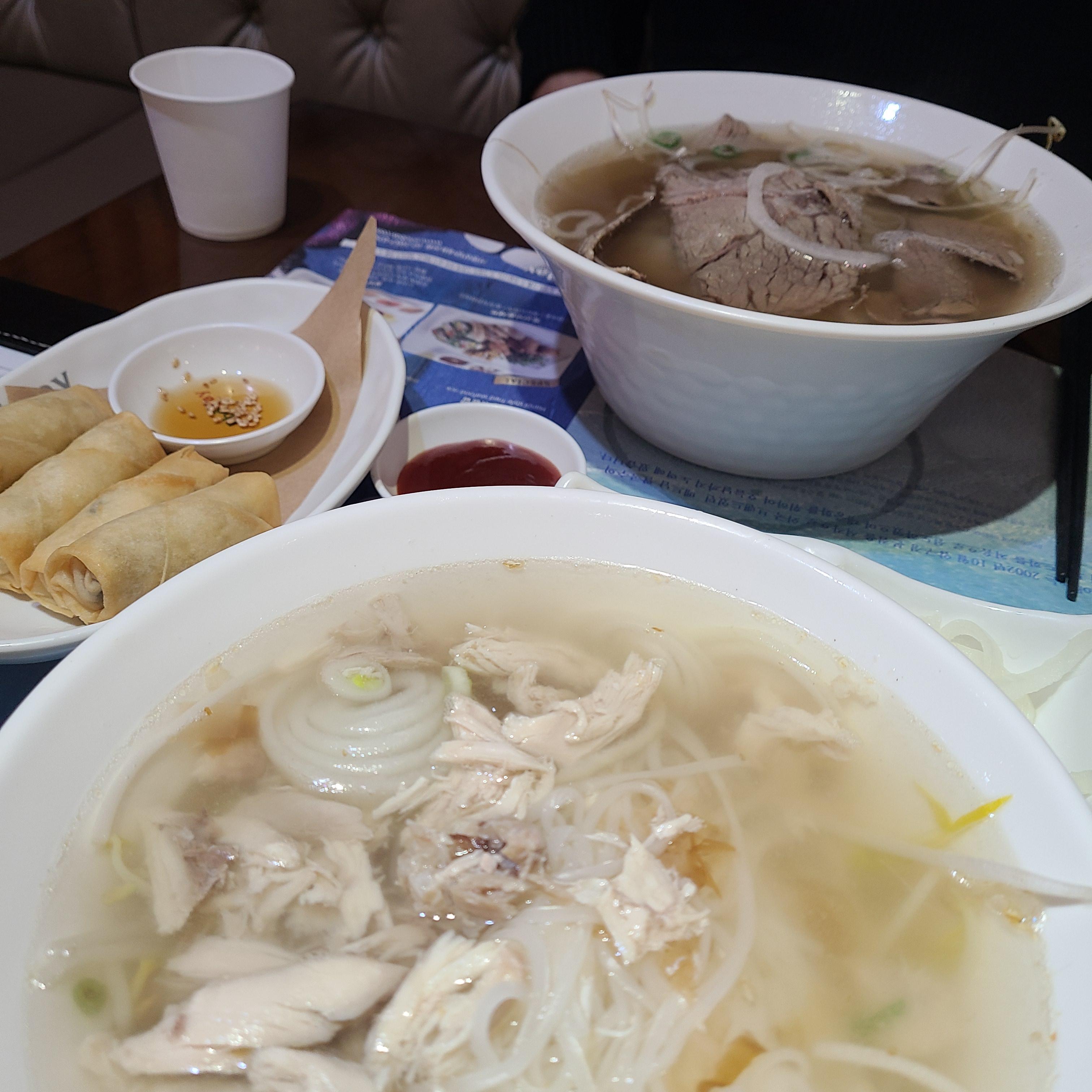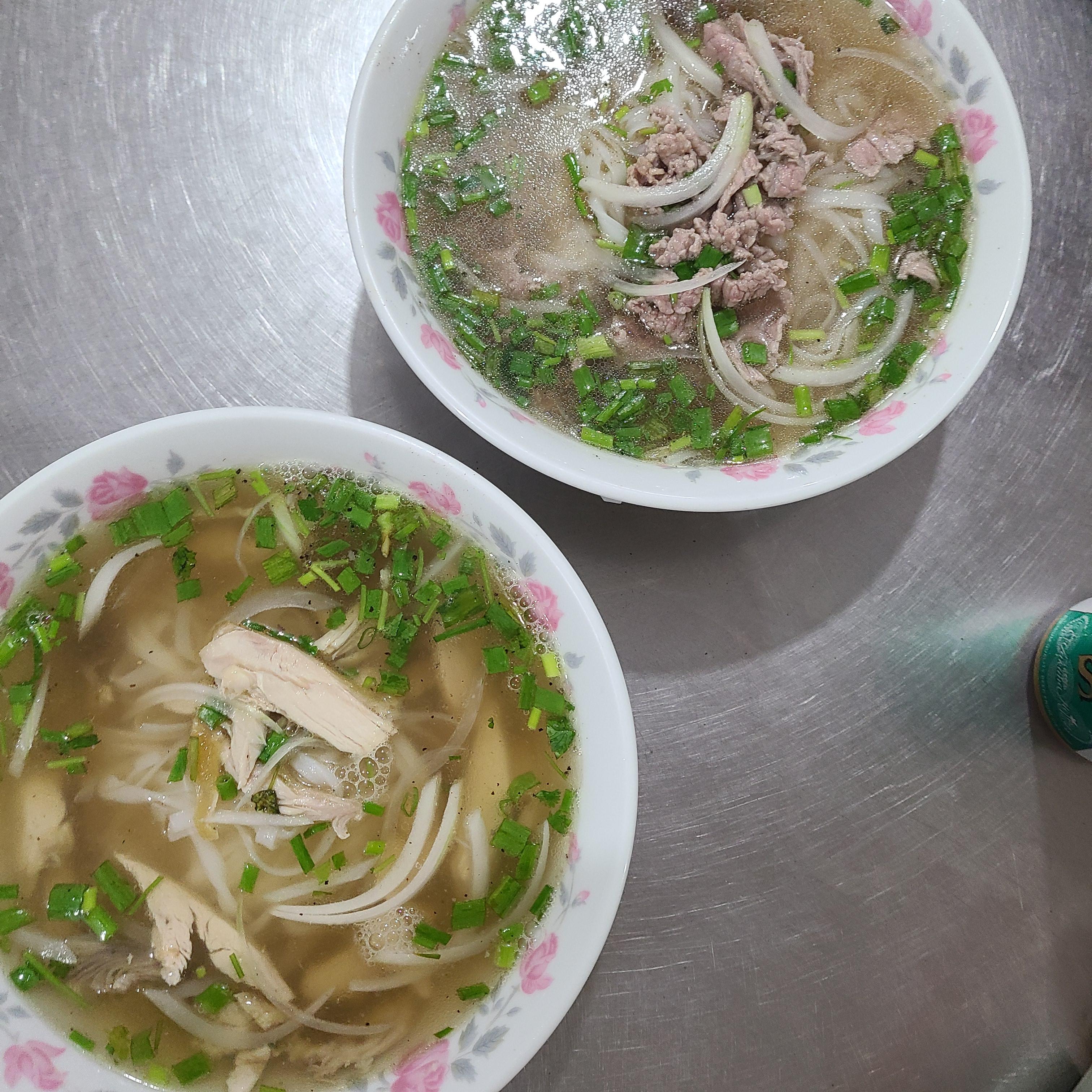 (작은 김): 호치민 공항에서 내려 숙소에 도착하니 거의 밤 12시가 다 되어가는데 그렇게 잠들면 인천공항에서 먹은 쌀국수랑은 비교가 안될 정도다. 저는 phở gà(닭고기 쌀국수)를 주문했고 Giant Nam은 phở thịt(돼지고기 쌀국수)를 주문했습니다.