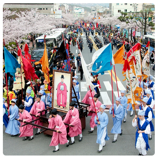 처음 행사는 충무공 인순신의 정원이 있는 북원 로터리에서 제사를 지내는 것을 중심으로 진행되었다. 1963년부터 충무공의 숭고한 정신을 일깨워 벚꽃과 함께 즐길 수 있는 봄축제로 발전하여 지역문화예술을 발전시키고 세계군악제, 팔도풍물시장 등 문화예술행사를 많이 개발 및 유치하고 있다. 매년 관광객을 유치하며 다가올 역사와 전통을 기념하는 대형 축제로 성장했습니다.