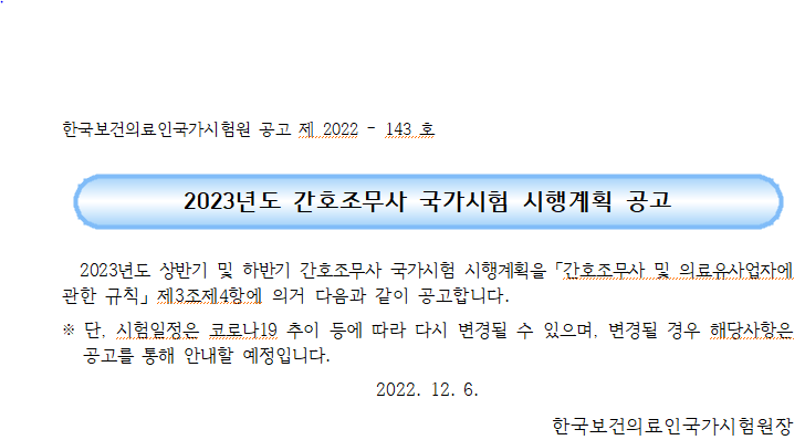 23년 상반기 간호조무사 국가고시