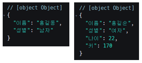 console.log("성별 : " + a사람.성별);